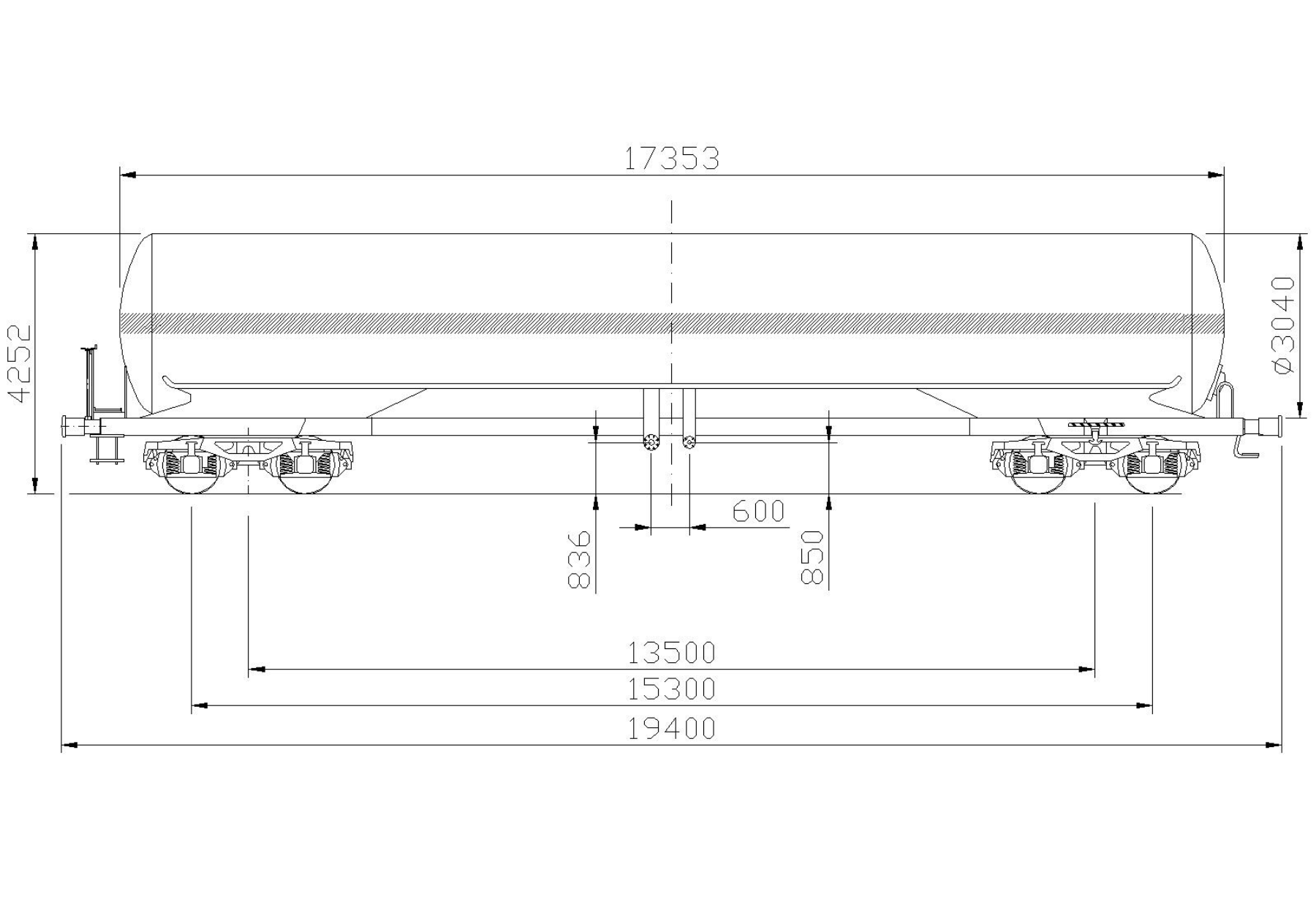 The 4-axled rail tank car is used for the transportation of gases, liquefied under pressure.